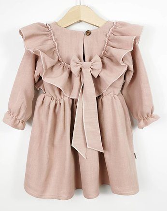 Ta dziewczęca sukienka w kolorze brudnego różu to idealna propozycja dla tych, którzy potrzebują czegoś bardziej odświętnego, ale w prostym, nieprzesadzonym stylu. Z przodu niepozorna – z delikatną falbanką i lekko marszczonym dołem. Za to z tyłu… tu się dzieje prawdziwa magia! Kto powiedział, że nomad kid nie może być elegant?